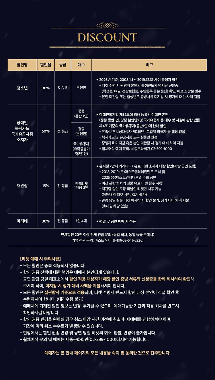 - 특정 기간, 특정 공연일에만 판매하는 가격이 있으니 예매 전 [가격 전체 보기]를 눌러 확인해 주세요.