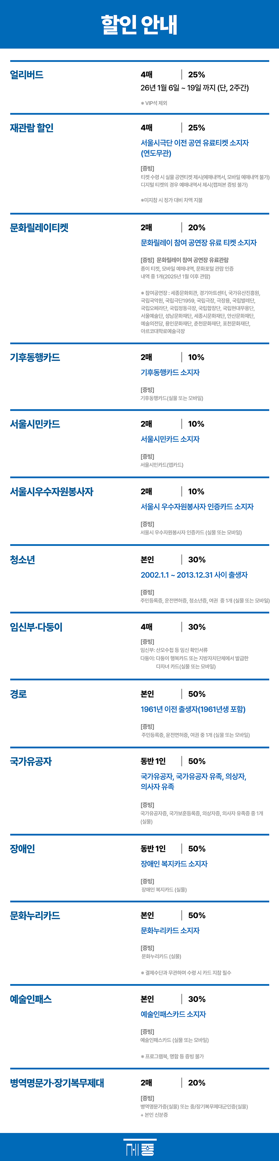 - 특정 기간, 특정 공연일에만 판매하는 가격이 있으니 예매 전 [가격 전체 보기]를 눌러 확인해 주세요.