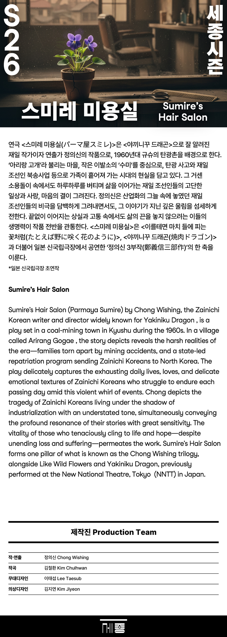 화,수,목,금 오후 7시 30분 / 토,일,공휴일 오후 3시 00분