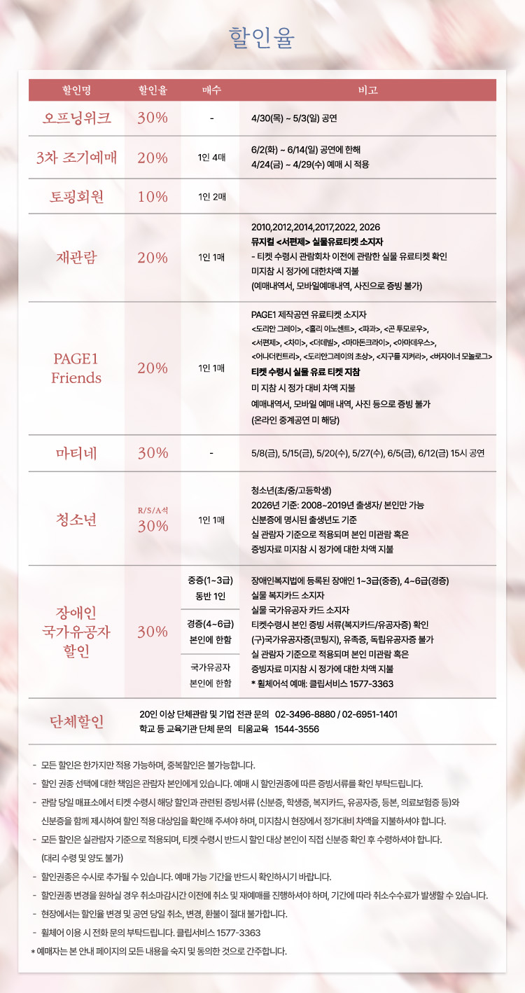 - 특정 기간, 특정 공연일에만 판매하는 가격이 있으니 예매 전 [가격 전체 보기]를 눌러 확인해 주세요.