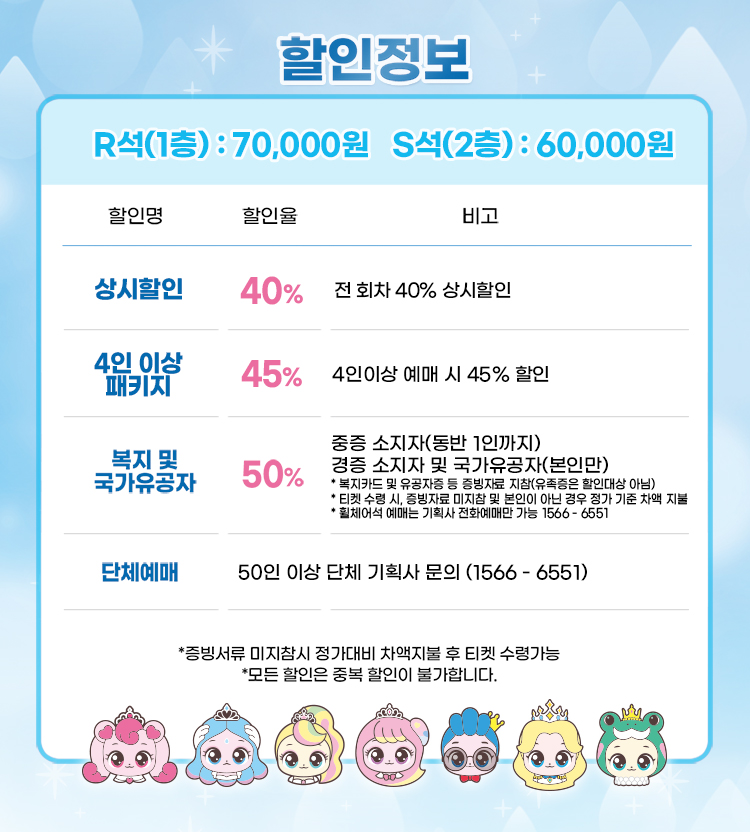 - 예매 후 7일 이내 취소시 티켓 금액 전액이 환불됩니다.(예매 수수료 제외)