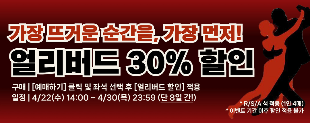 공연 오픈 기념, 4월 한정 깜짝 얼리버드 30% 할인 (1인 4매)
