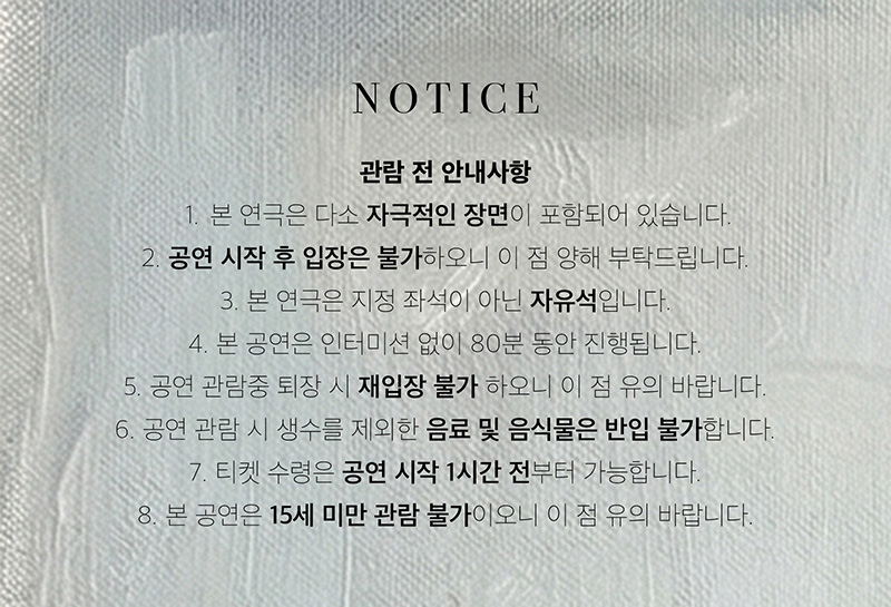 - 관람일 2일전 ~ 취소기한까지: 티켓금액의 30%