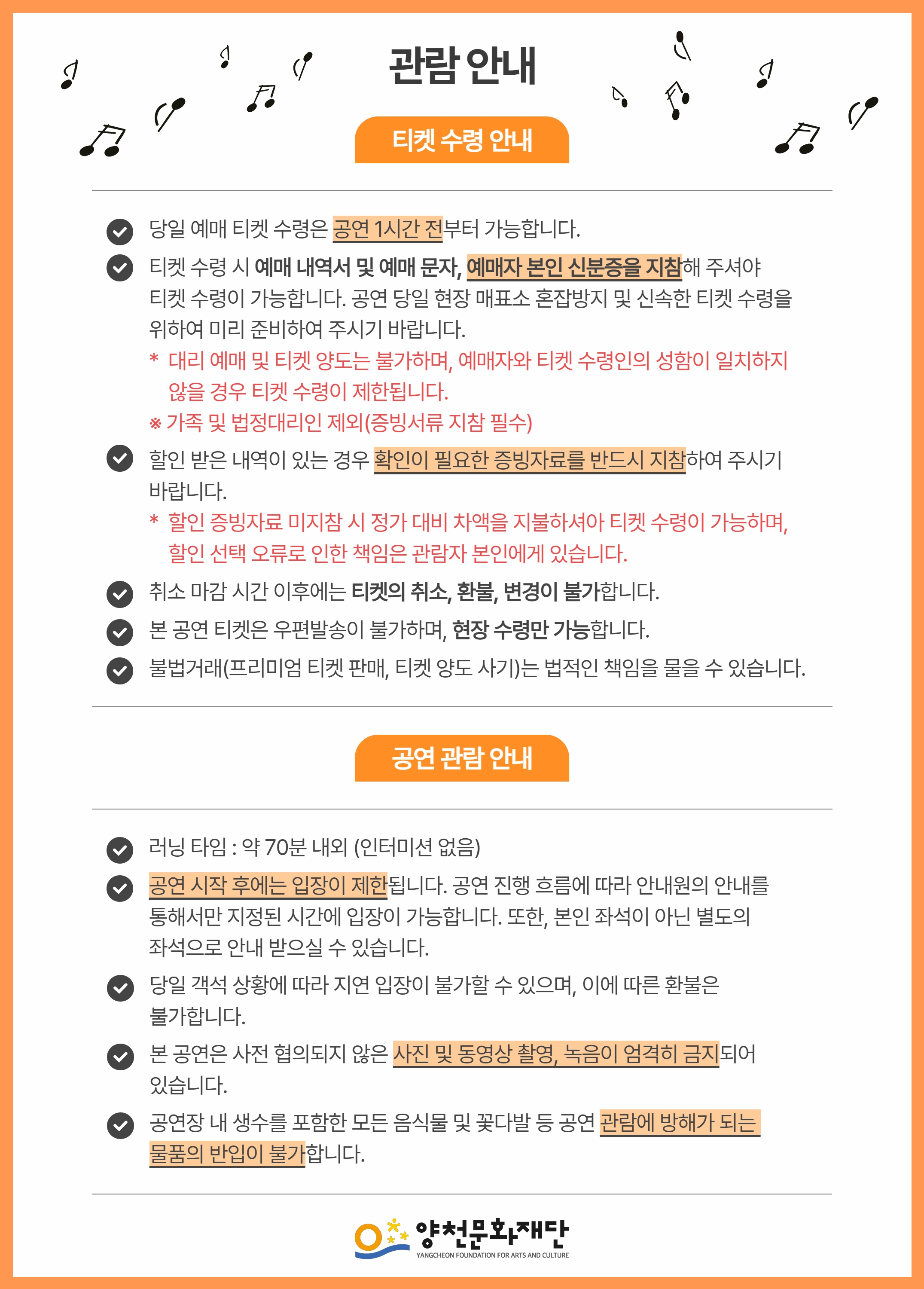 - 관람일 2일전 ~ 취소기한까지: 티켓금액의 30%