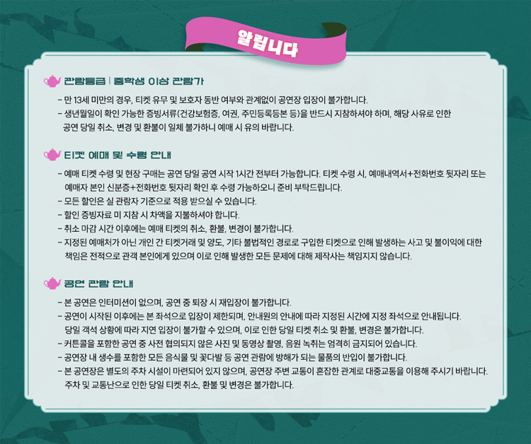 - 특정 기간, 특정 공연일에만 판매하는 가격이 있으니 예매 전 [가격 전체 보기]를 눌러 확인해 주세요.