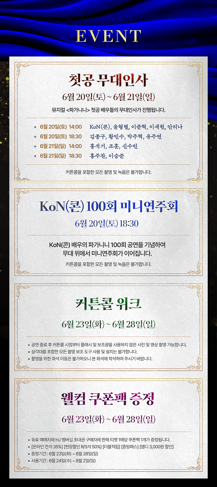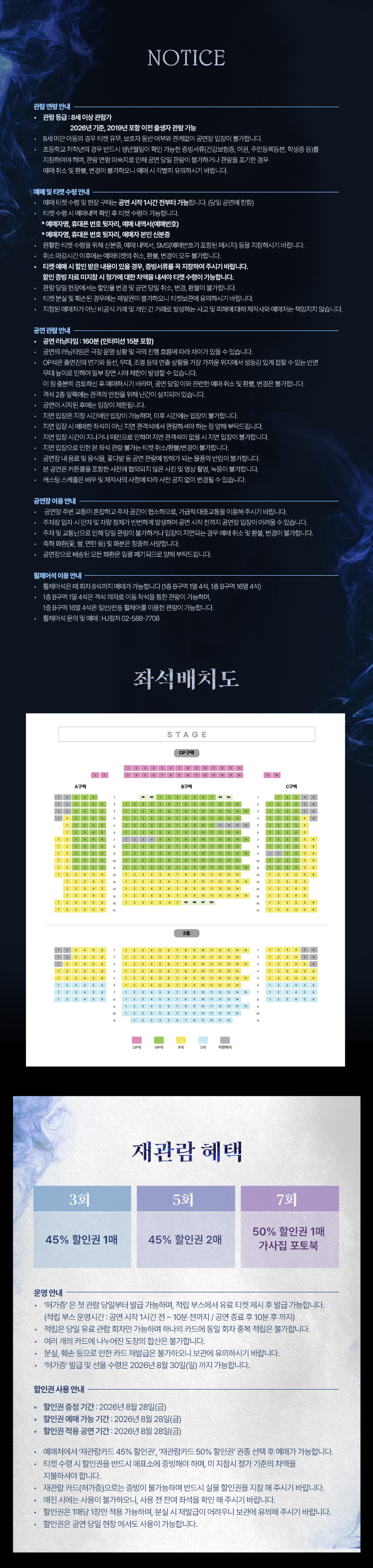 - 관람일 2일전 ~ 취소기한까지: 티켓금액의 30%