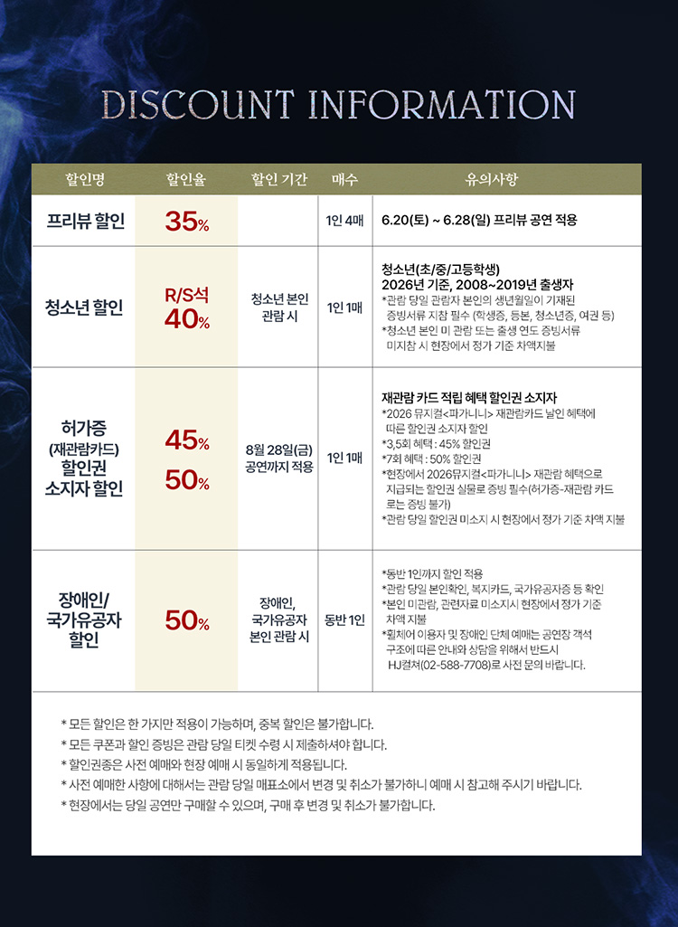 - 특정 기간, 특정 공연일에만 판매하는 가격이 있으니 예매 전 [가격 전체 보기]를 눌러 확인해 주세요.