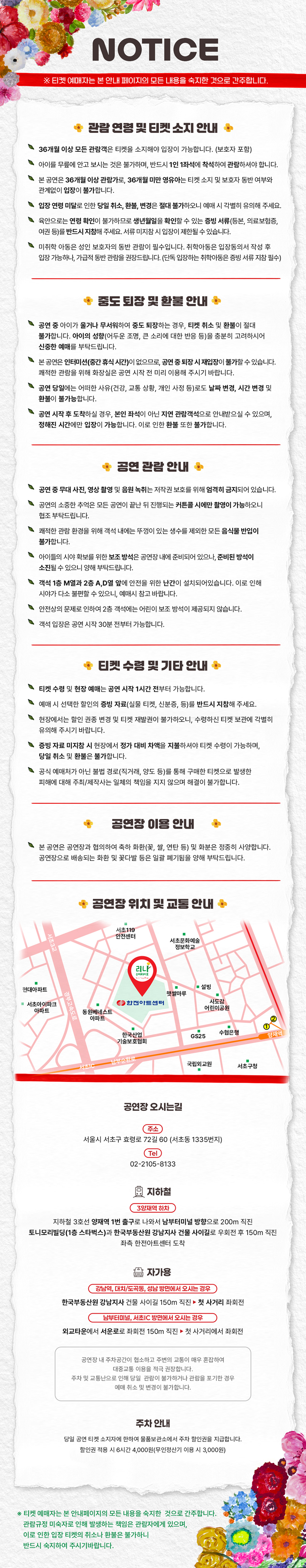※ 극장, 공연제작사 및 관계사의 협의에 따라 일부 좌석이 마감되었습니다.