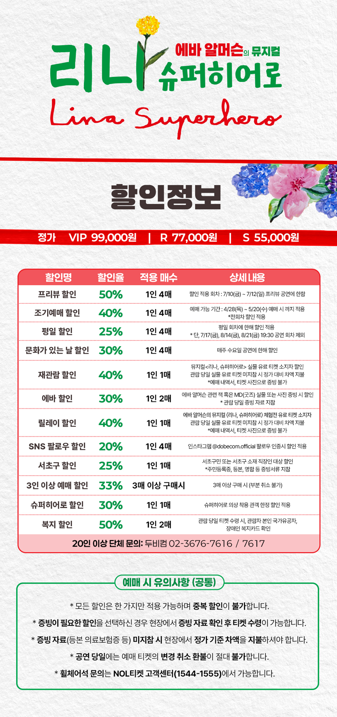 - 특정 기간, 특정 공연일에만 판매하는 가격이 있으니 예매 전 [가격 전체 보기]를 눌러 확인해 주세요.