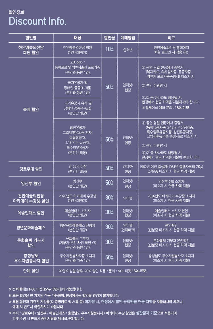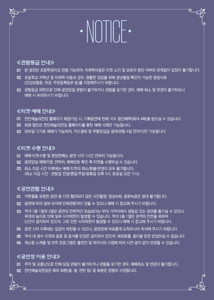 - 특정 기간, 특정 공연일에만 판매하는 가격이 있으니 예매 전 [가격 전체 보기]를 눌러 확인해 주세요.