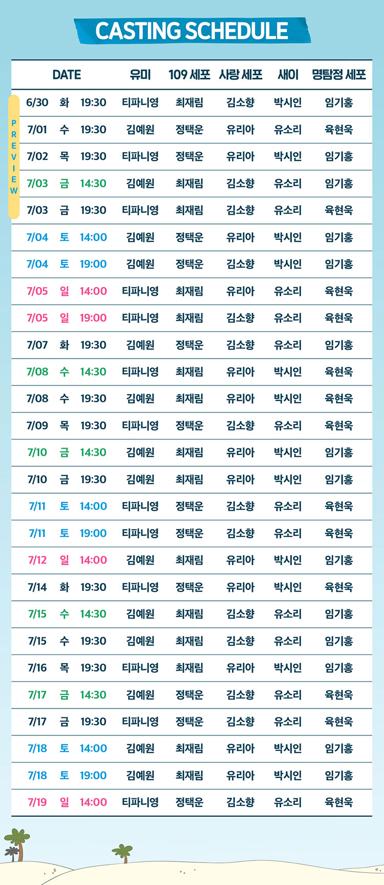 - 캐스팅 일정은 배우 및 제작사의 사정에 따라 사전 공지 없이 변경될 수 있습니다.