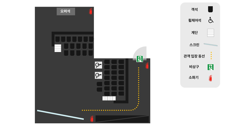 오른쪽 세로로 긴 보라색 네모에는 공연 정보.